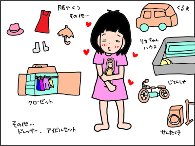 リカちゃんの服やグッズ、新しい人形なんかを言って回っているため、