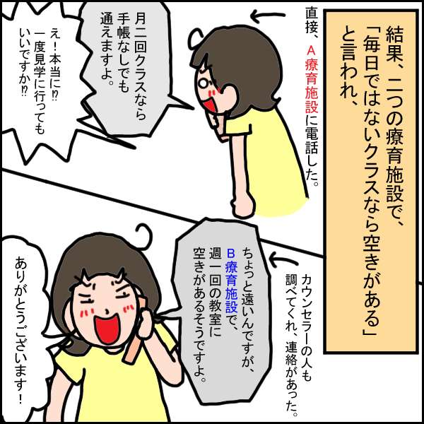 2か所の療育施設から、空きがあると言われ、
