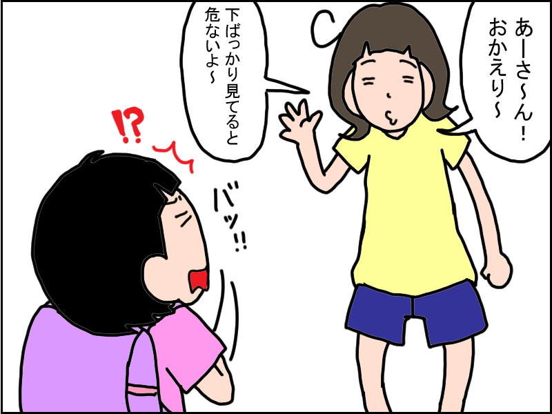 いつもより帰りが遅かったあーさん。