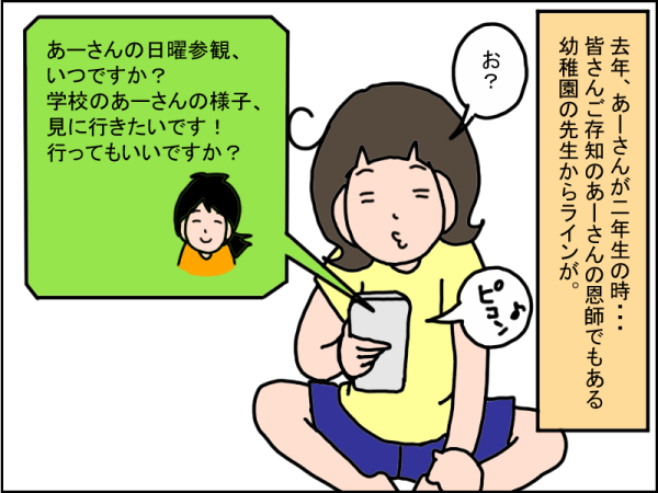 先生が日曜参観に来てくれることを話すと、大喜び!